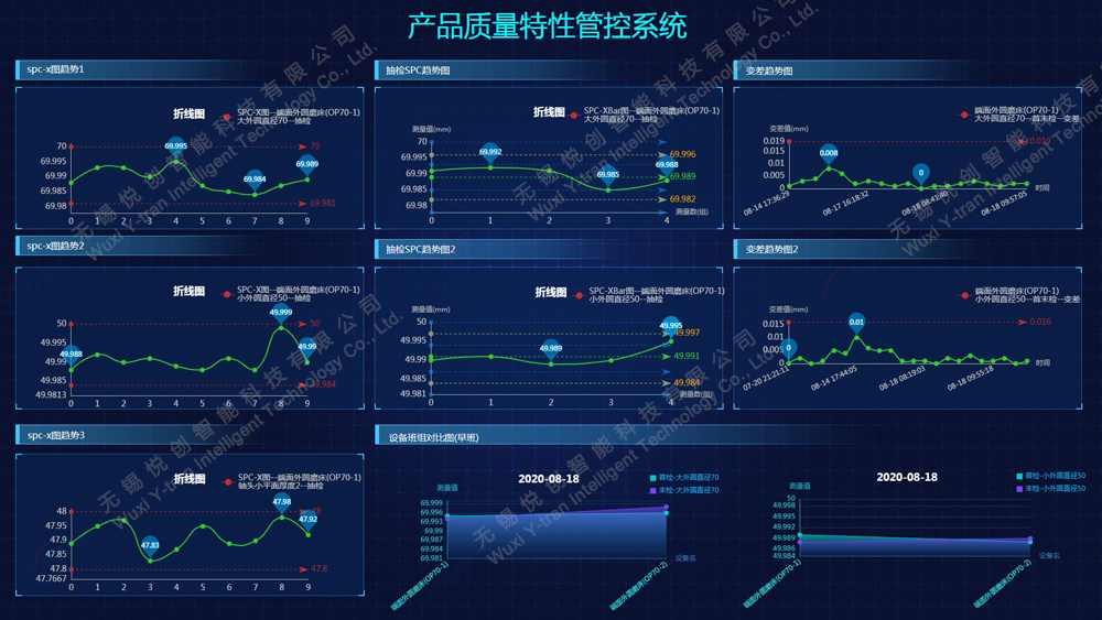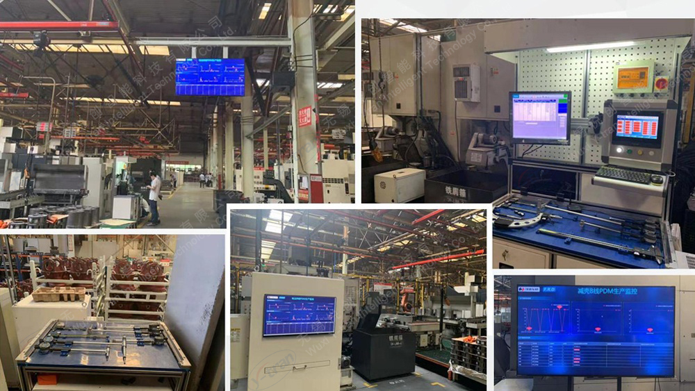產(chǎn)線生產(chǎn)大屏,運用SPC工作站,中繼節(jié)點網(wǎng)關(guān),WEB服務器提供從檢測設備到數(shù)據(jù)采集服務器的傳輸通道,卡尺等測量器具實現(xiàn)高精度數(shù)顯顯示及無線數(shù)據(jù)采集,測量數(shù)據(jù)系統(tǒng)自動記錄,可在線分析加工數(shù)據(jù),針對異常檢測數(shù)據(jù)進行預警分析,實現(xiàn)針對重要測量參數(shù)與加工機床進行對應的刀具補償,并與第三方系統(tǒng)進行數(shù)據(jù)對接,實現(xiàn)整廠測量數(shù)據(jù)信息化。