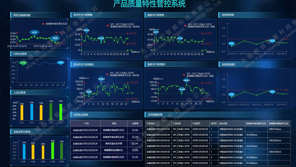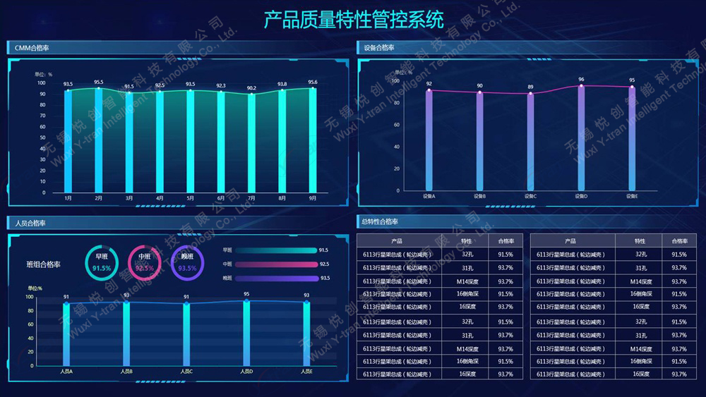 產(chǎn)線生產(chǎn)大屏人員合格率、設備合格率、總特性合格率分析及展示