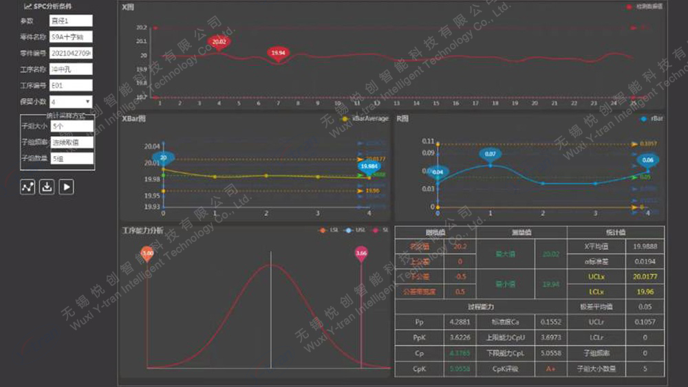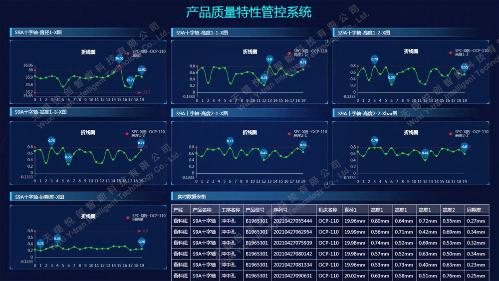 產(chǎn)線生產(chǎn)大屏,運(yùn)用SPC工作站,中繼節(jié)點(diǎn)網(wǎng)關(guān),WEB服務(wù)器提供從檢測(cè)設(shè)備到數(shù)據(jù)采集服務(wù)器的傳輸通道,卡尺等測(cè)量器具實(shí)現(xiàn)高精度數(shù)顯顯示及無(wú)線數(shù)據(jù)采集,測(cè)量數(shù)據(jù)系統(tǒng)自動(dòng)記錄,可在線分析加工數(shù)據(jù),針對(duì)異常檢測(cè)數(shù)據(jù)進(jìn)行預(yù)警分析,實(shí)現(xiàn)整廠測(cè)量數(shù)據(jù)信息化。